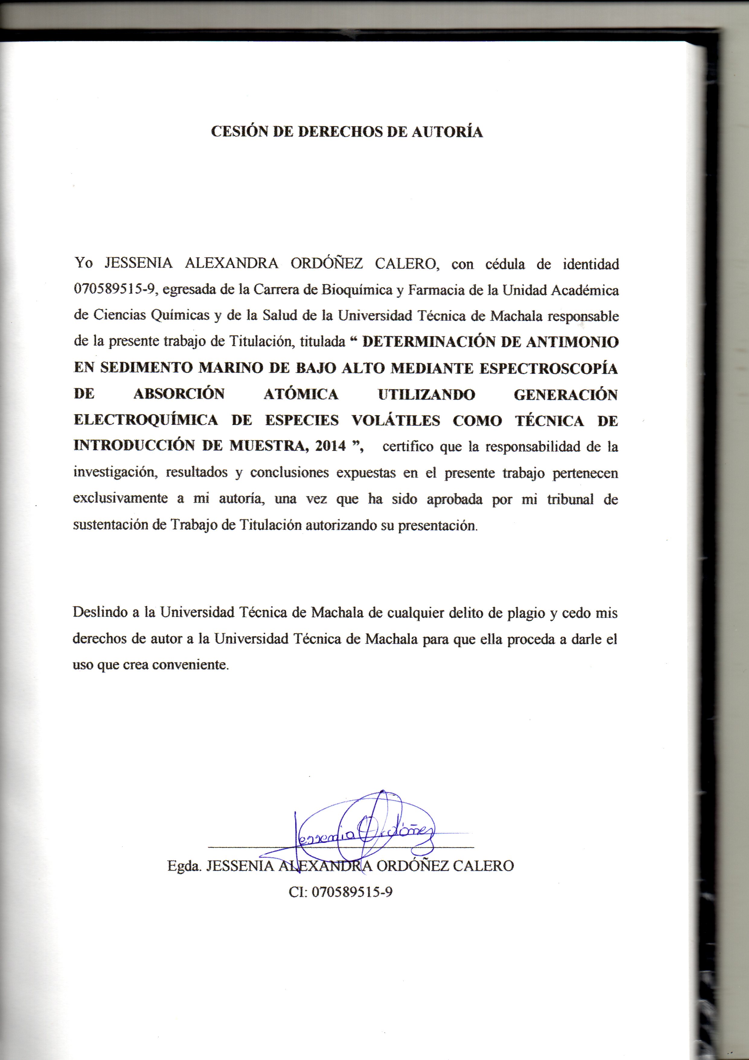 Ordóñez Calero, J. A. (2015). Determinación de antimonio en sedimento marino de Bajo Alto mediante espectroscopía de absorción atómica utilizando generación electroquímica de especies volátiles como técnica de introducción de muestra, 2014 (tesis de pregrado). UTMACH, Unidad Académica de Ciencias Química y de la Salud, Machala, Ecuador.