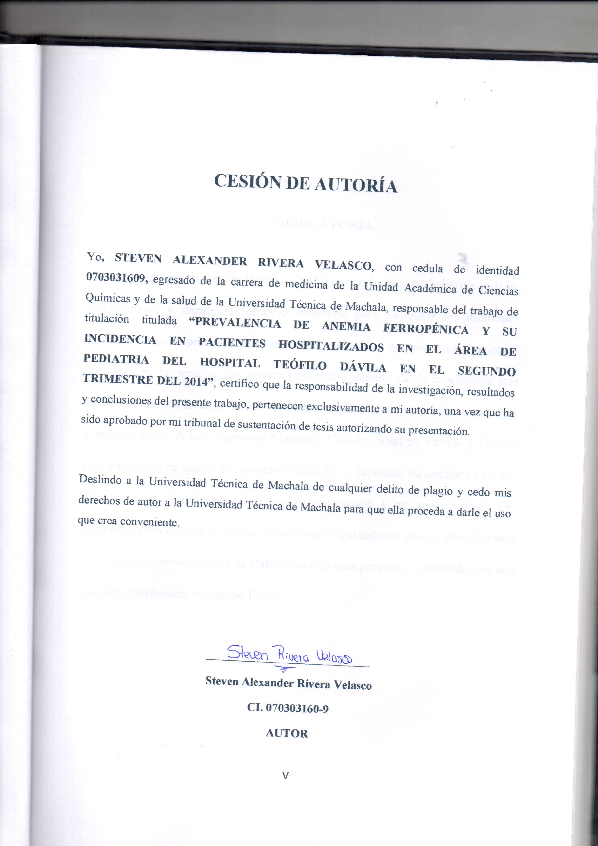 Rivera Velasco, S. A. (2015). Prevalencia de anemia ferropéndica y su incidencia en pacientes hospitalizados en el área de pediatría del Hospital Teófilo Dávila en el segundo trimestre del 2014 (tesis de pregrado). UTMACH, Unidad Académica de Ciencias Química y de la Salud, Machala, Ecuador.