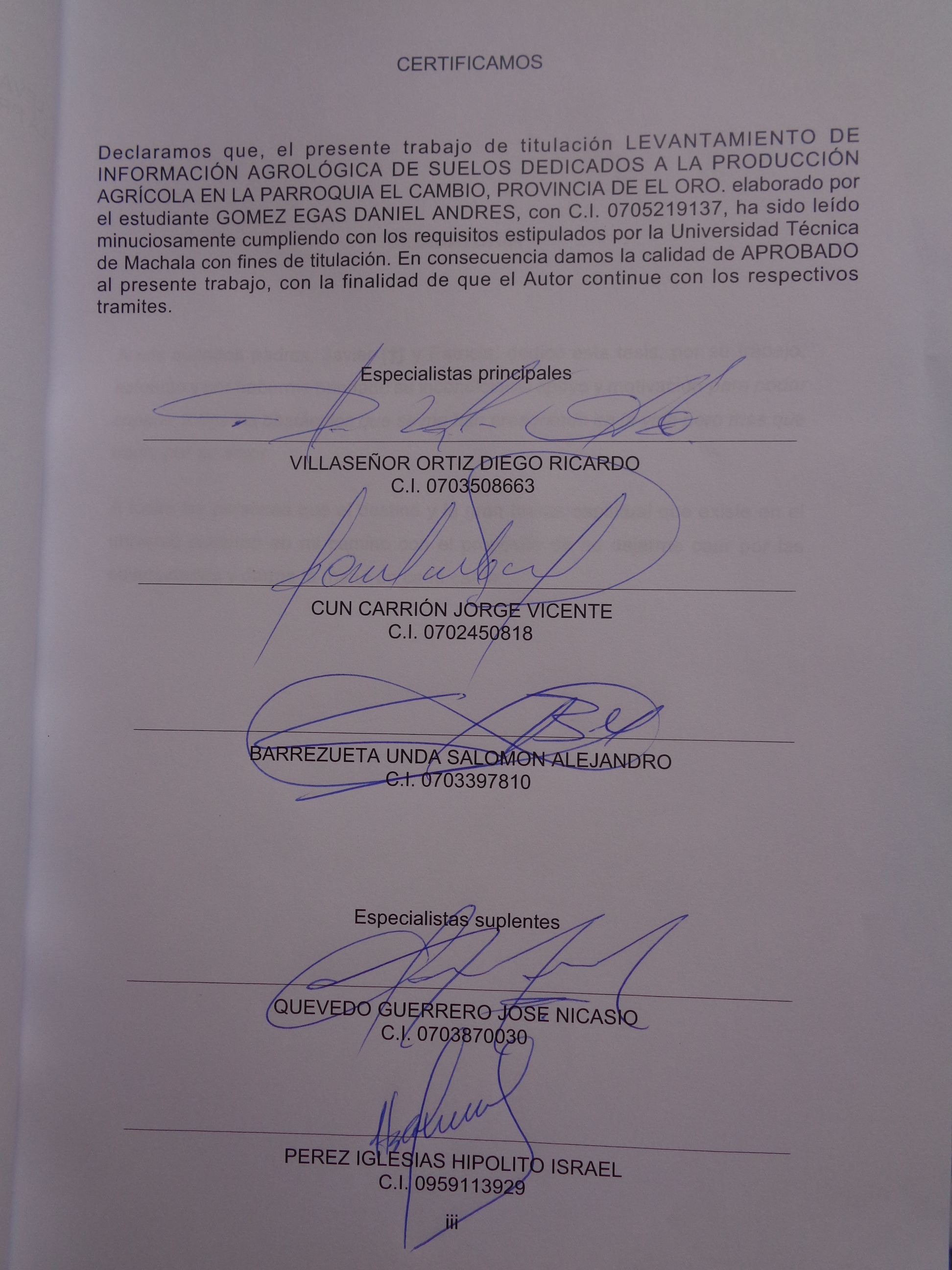 Gomez Egas, D. A. (2015) Levantamiento de información agrológica de suelos dedicados a la producción agrícola en la parroquia el cambio provincia de El Oro. (Trabajo de titulación). UTMACH, Unidad Académica de Ciencias Agropecuarias, Machala, Ecuador.