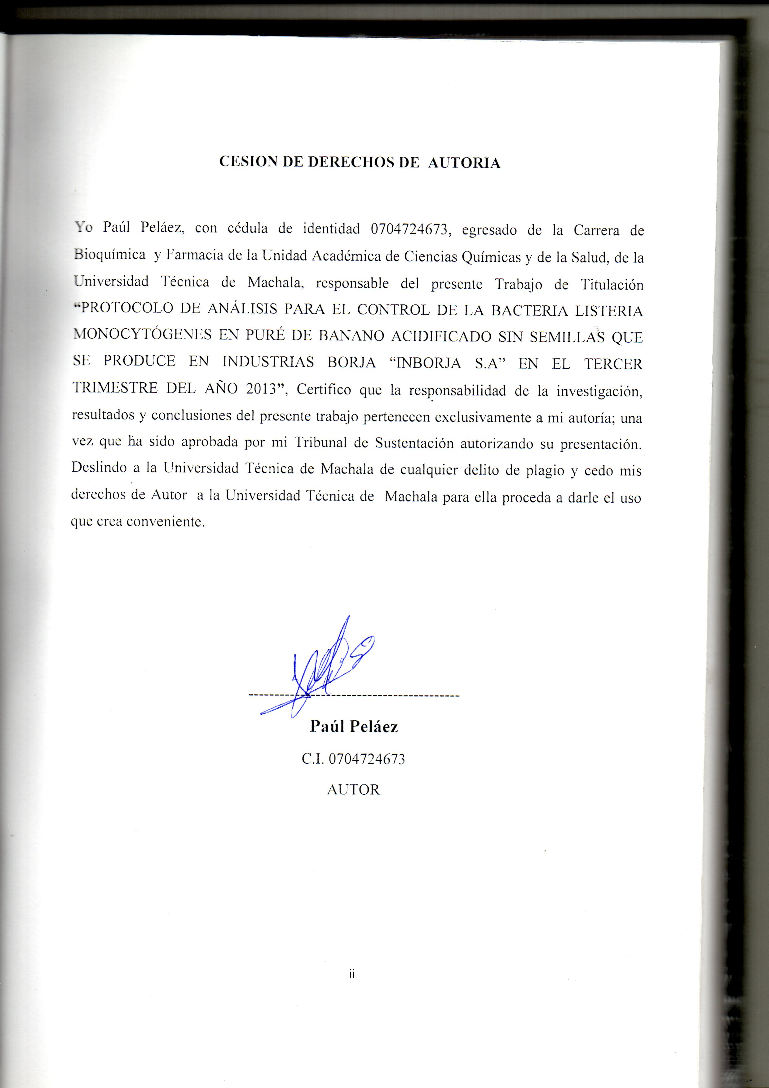 Peláez Morocho, P. A. (2014) Protocolo de análisis para el control de la bacteria Listeria Monocytógenes en puré de banano acidificado sin semillas que se producen en Industrias Borja INBORJA en el tercer trimestre del año 2013 (tesis de pregrado). UTMACH, Unidad Académica de Ciencias Química y de la Salud, Machala, Ecuador.