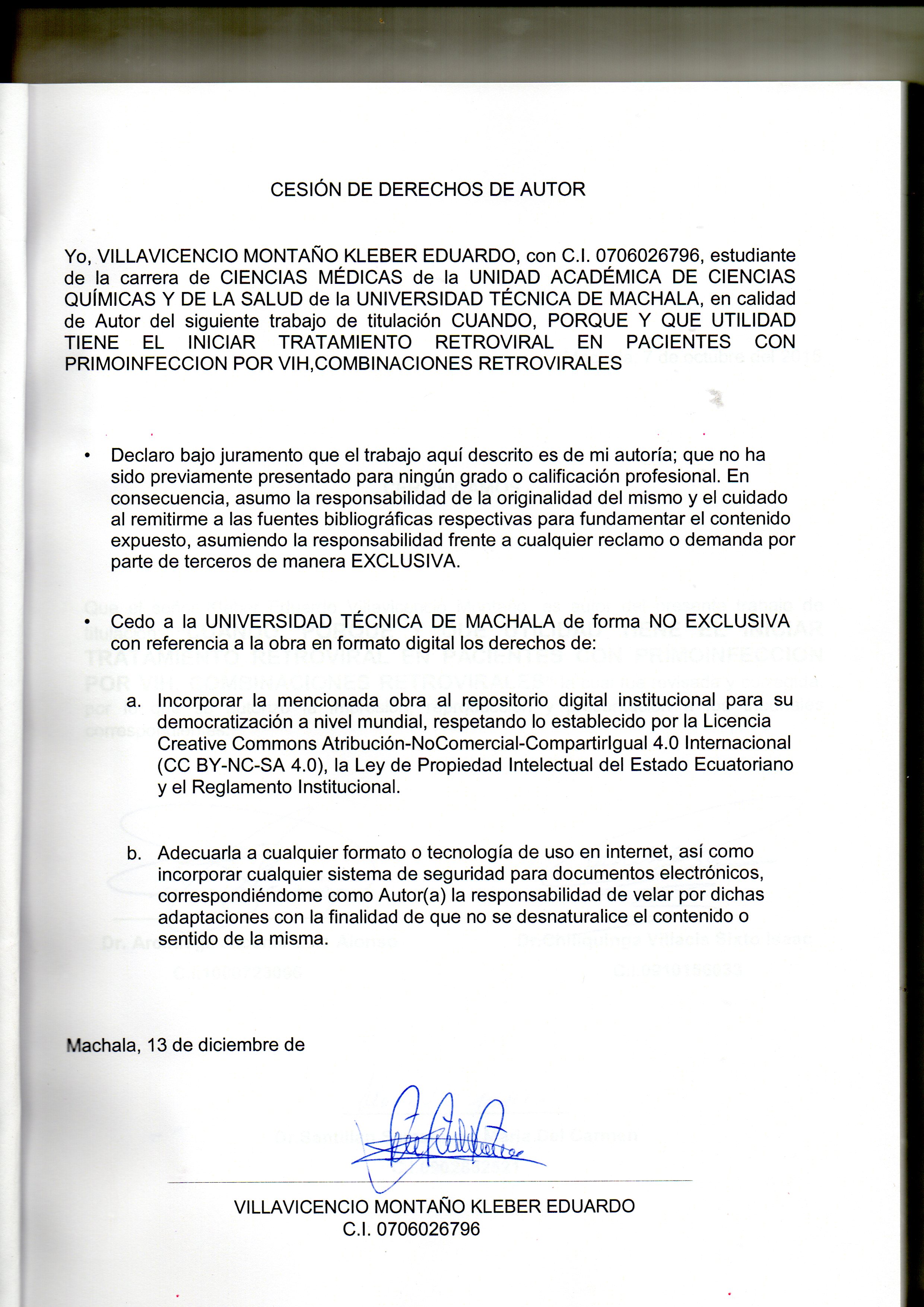 Villavicencio Montaño, K. E. (2015) Cuando, porque y que utilidad tiene el iniciar tratamiento retroviral en pacientes con primoinfección por VIH, combinaciones retrovirales. (Examen complexivo). UTMACH, Unidad Académica de Ciencias Químicas de la Salud, Machala, Ecuador.