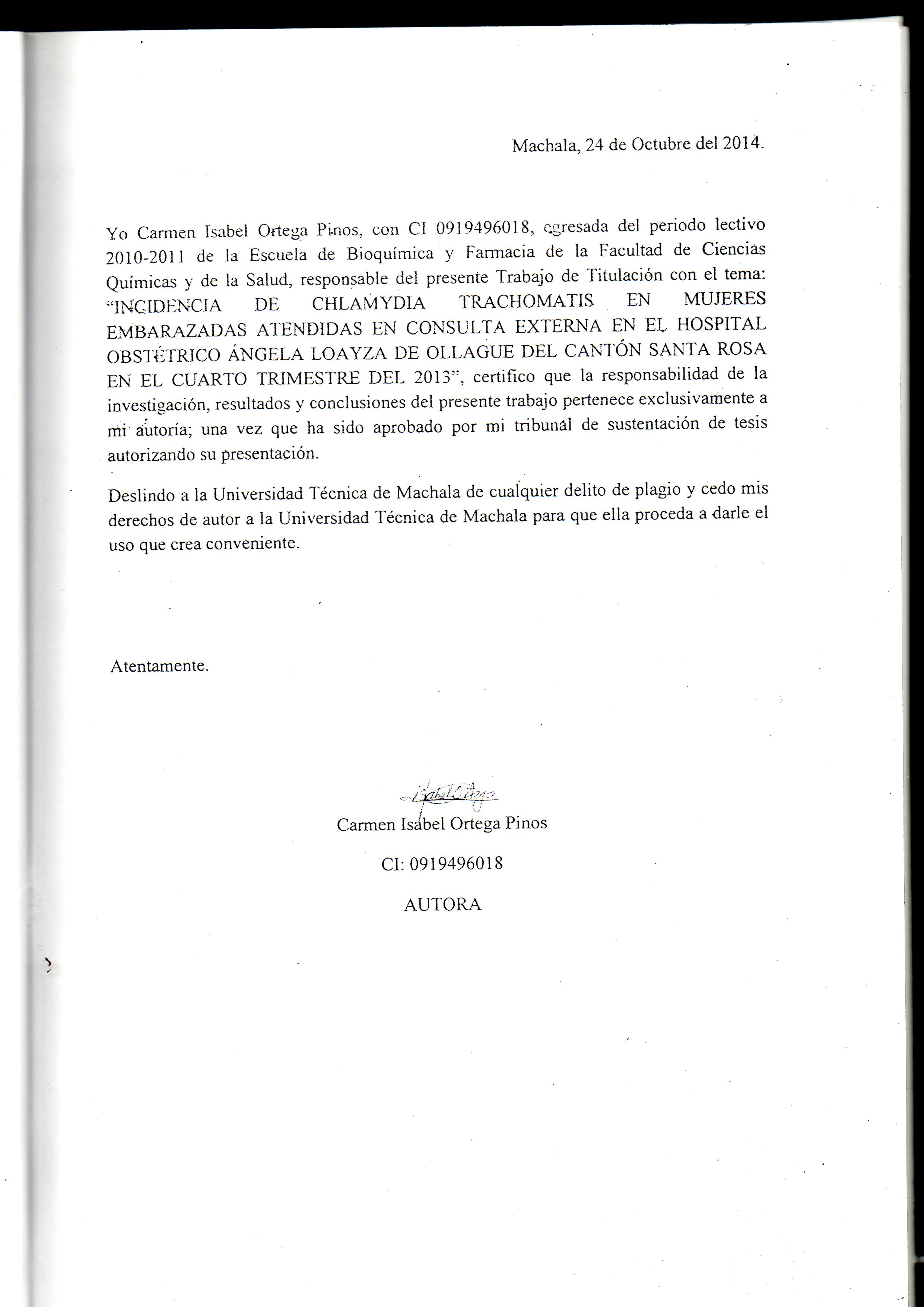 Incidencia de Chlamydia Trachomatis en mujeres embarazadas atendidas en consulta externa en el Hospital Obstétrico Ángela Loayza de Ollague del cantón Santa Rosa en el cuarto trimestre del 2013