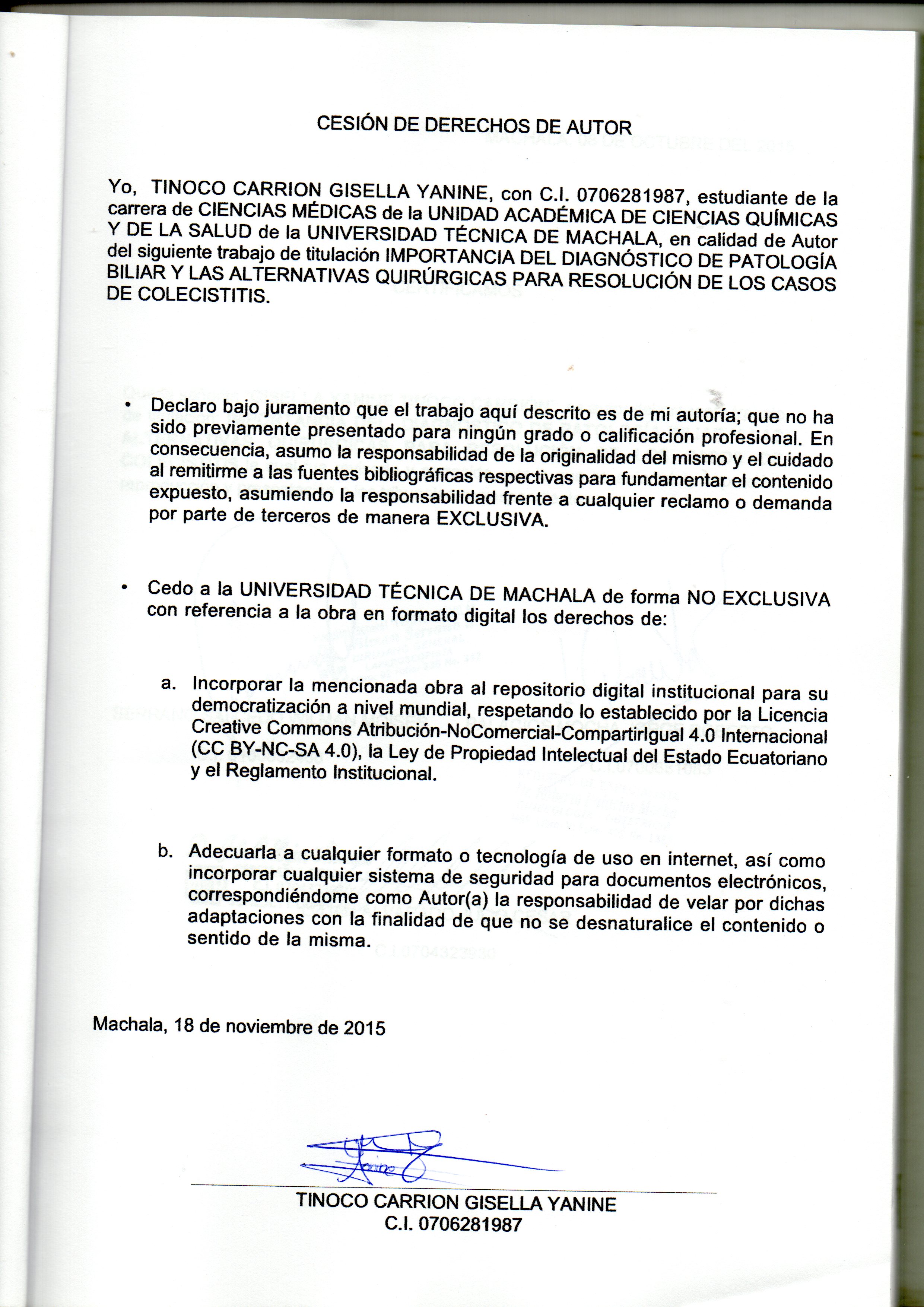 Tinoco Carrión, G. Y. (2015) importancia del diagnóstico de patología biliar y las alternativas quirúrgicas para resolución de los casos de colecistitis. (Examen complexivo). UTMACH, Unidad Académica de Ciencias Químicas de la Salud, Machala, Ecuador.