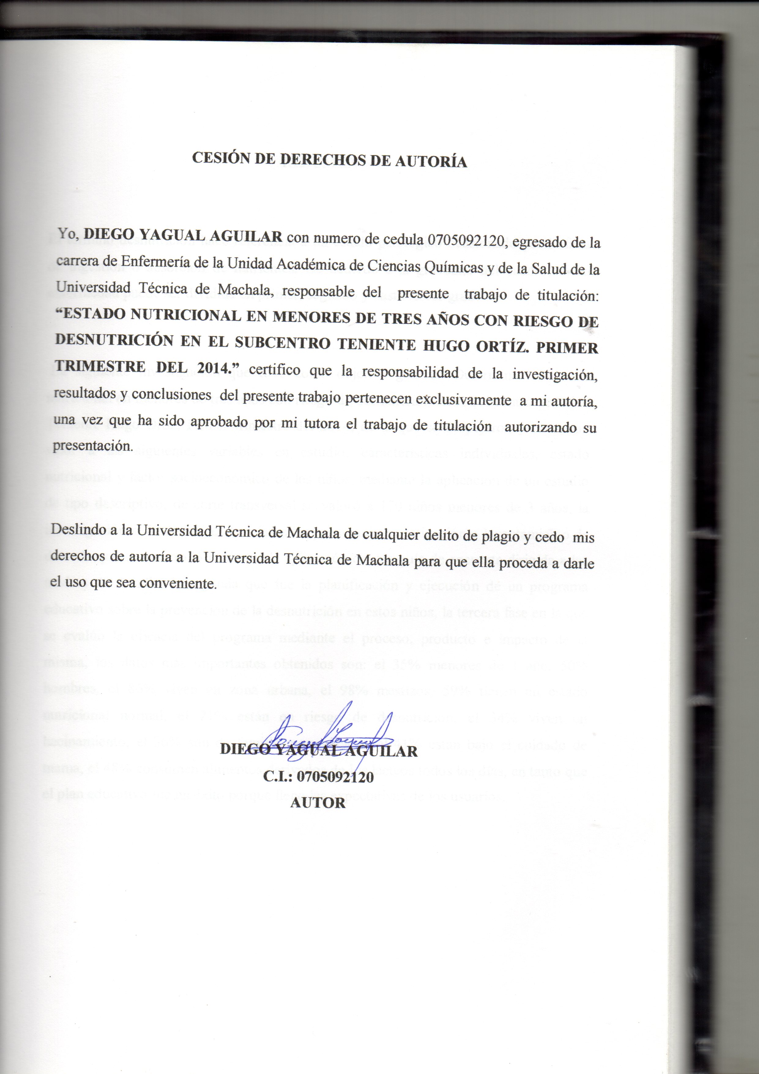Yagual Aguilar, D. M. (2015). Estado nutricional en menores de tres años con riesgo de desnutrición en el Subcentro Teniente Hugo Ortiz, primer trimestre del 2014 (tesis de pregrado). UTMACH, Unidad Académica de Ciencias Química y de la Salud, Machala, Ecuador.